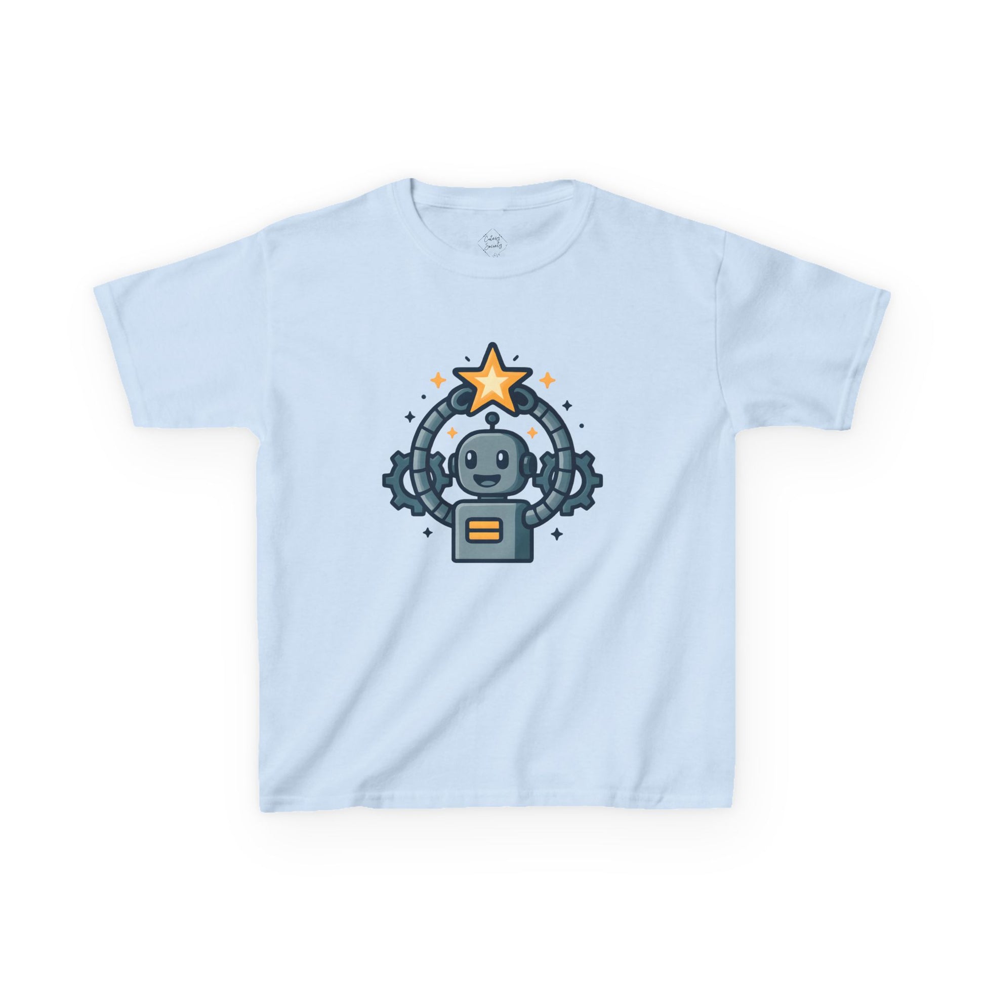 This cheerful kids tee brings small-robot charm to everyday play. A friendly robot holding a glowing star sits centered on a bright orange crew shirt — simple, bold, and full of personality. The midweight cotton feels soft against little skin while the classic fit lets kids run, climb, and cuddle with ease. Thoughtful details like a stretchy ribbed collar, shoulder tape for durability, and a tear-away label keep comfort front and center. The design’s playful spark captures imagination: it’s a shirt that kids will reach for when they want to feel brave, curious, and seen.