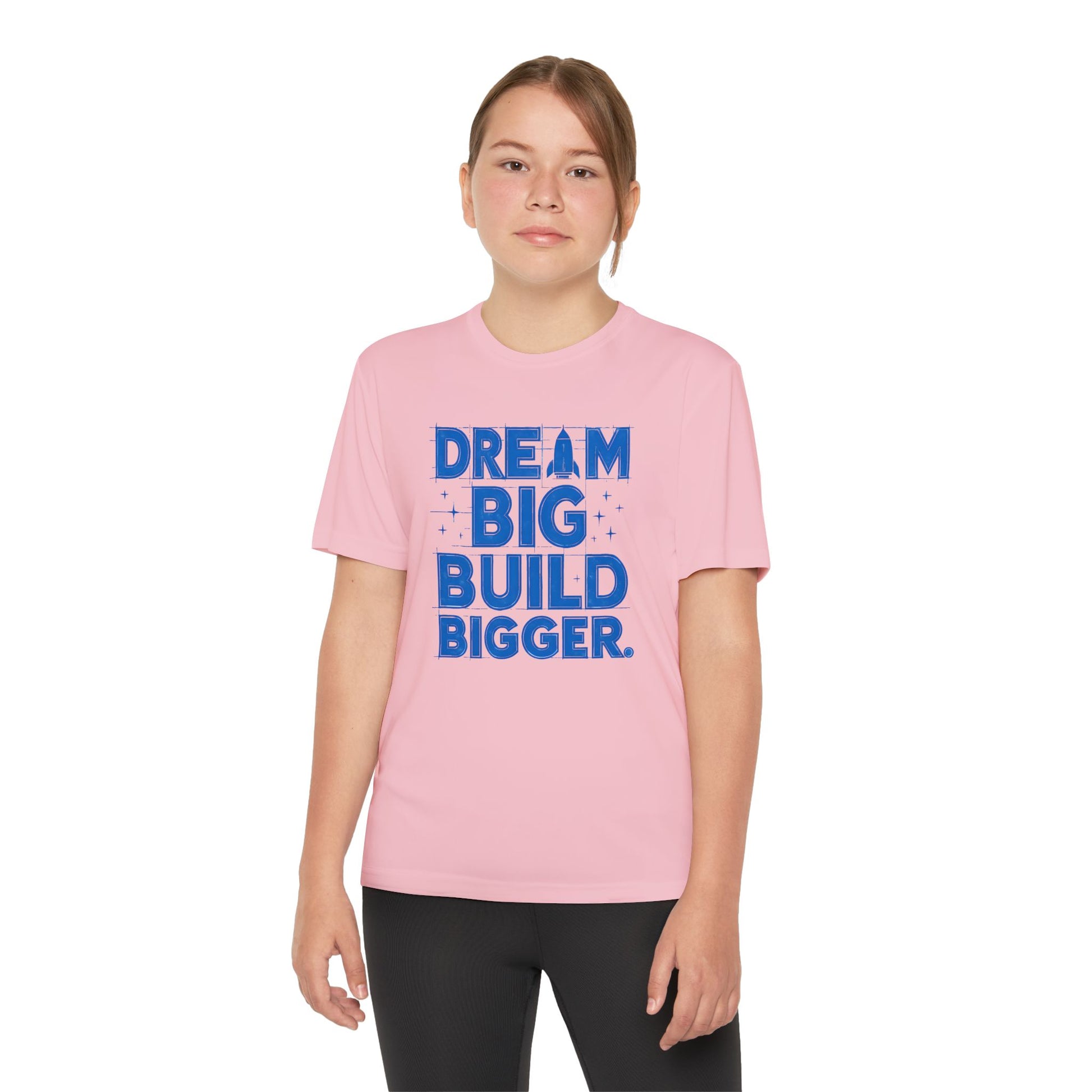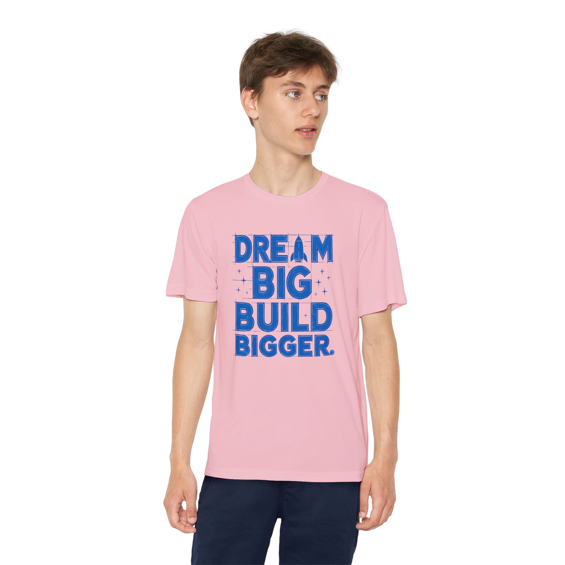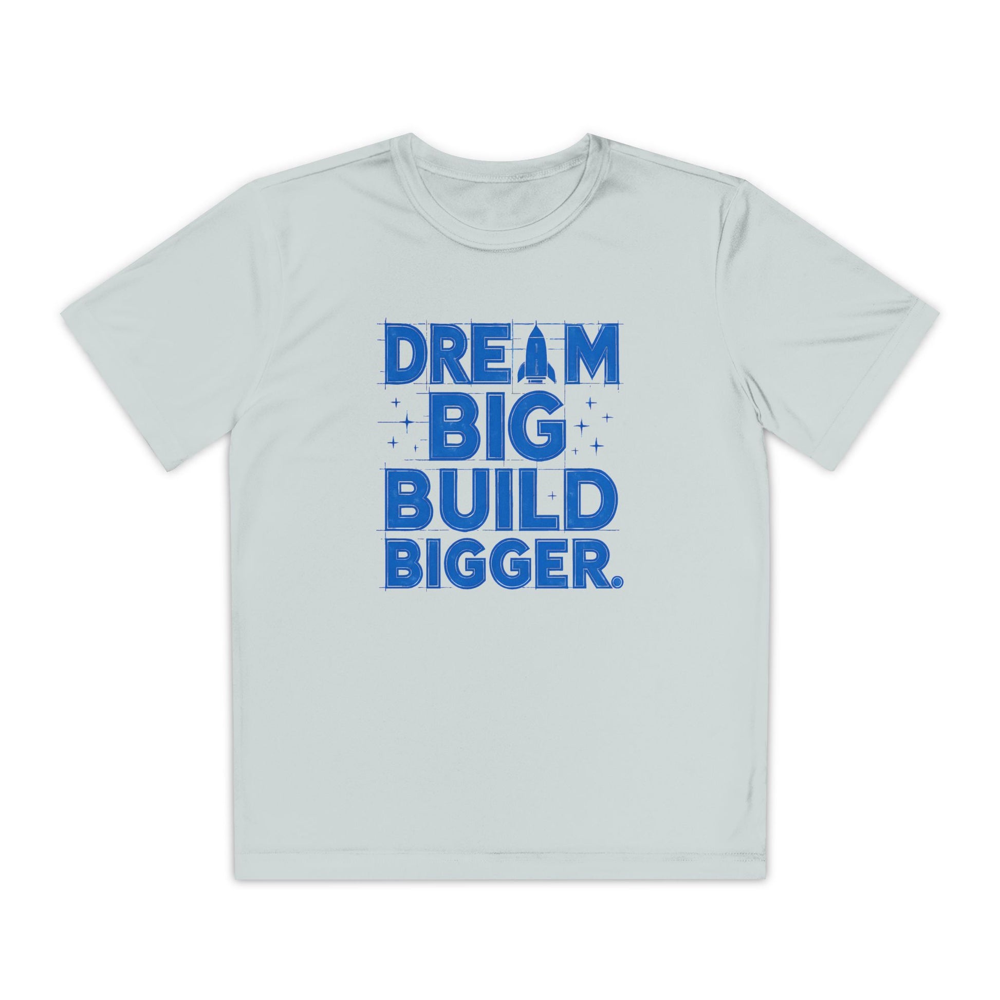Lightweight and built for movement, this athletic tee channels big ambitions into everyday wear. The bold block-letter design reads “DREAM BIG BUILD BIGGER,” with a subtle rocket silhouette and star accents that nudge curiosity and forward motion. The soft, ultra-light polyester keeps kids cool during practice, play, or while sketching their next invention. It sits close to the body for an athletic silhouette without restricting motion, and the DTF print stays vibrant through active days. Wear it to the workshop, the robotics meet, or a weekend of backyard experiments — it feels like a nudge to try one more idea.
