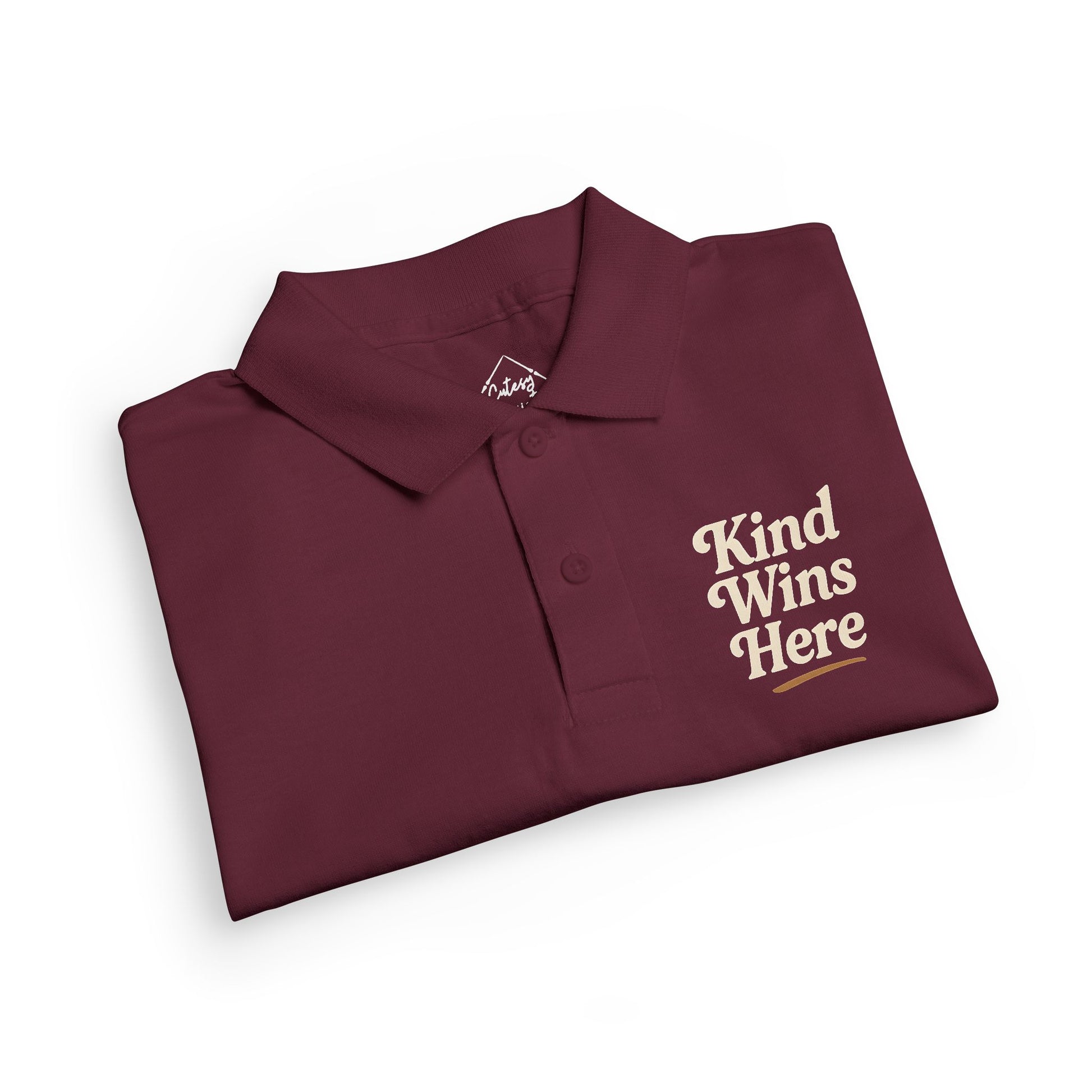 Neat and confident, this polo centers "Kind Wins Here" in a compact chest print. This is a kids' classic polo shirt designed for everyday school days and play. The message feels steady and encouraging.