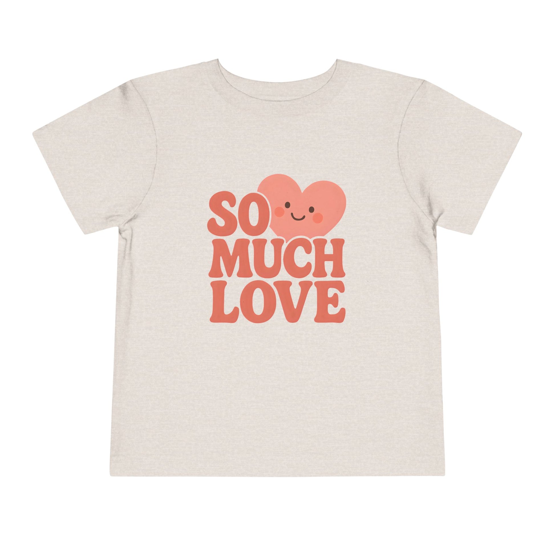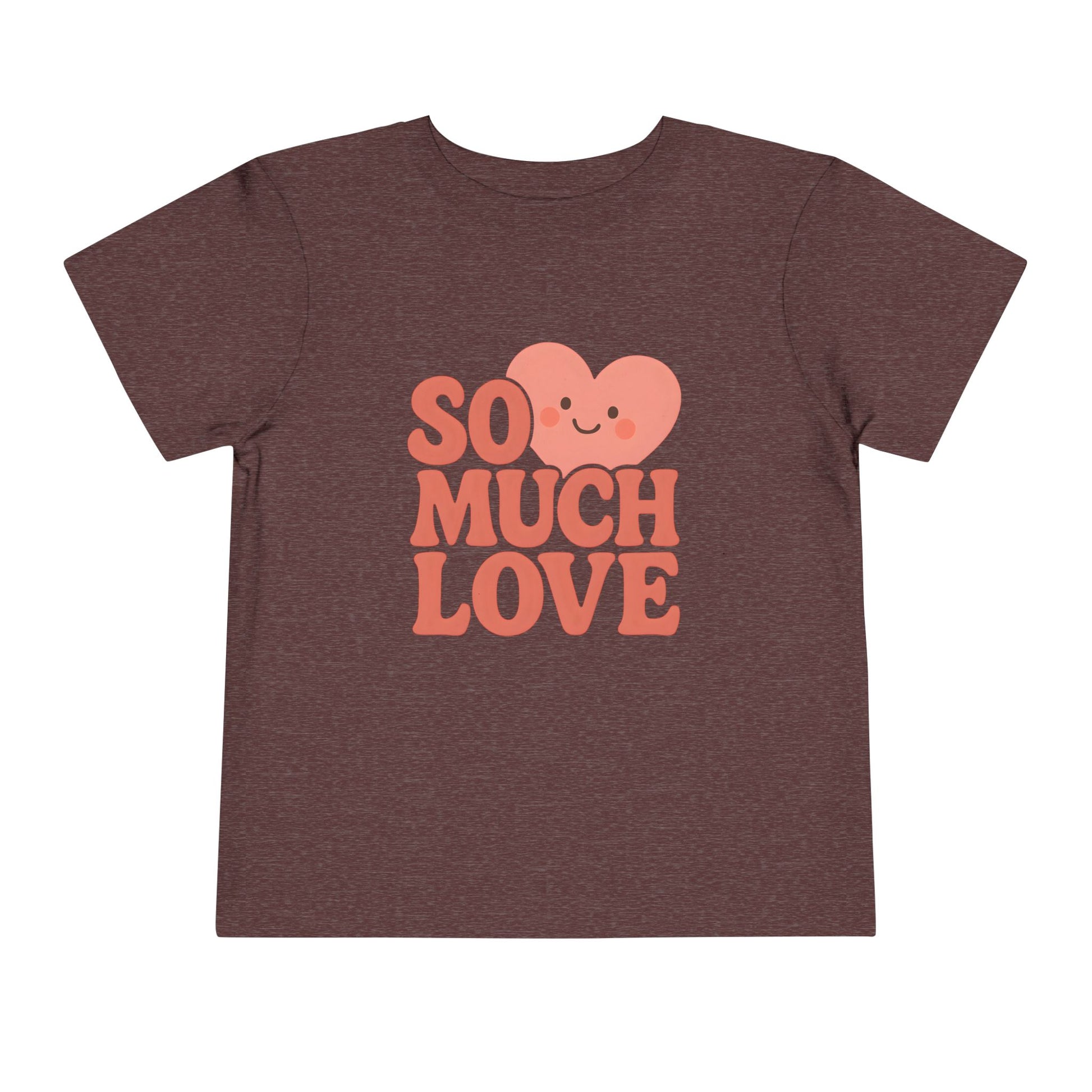 A smiling heart crowns the words So Much Love in warm, rounded lettering. This is a lightweight toddler t-shirt designed for everyday wear. It keeps the message simple and sweet.