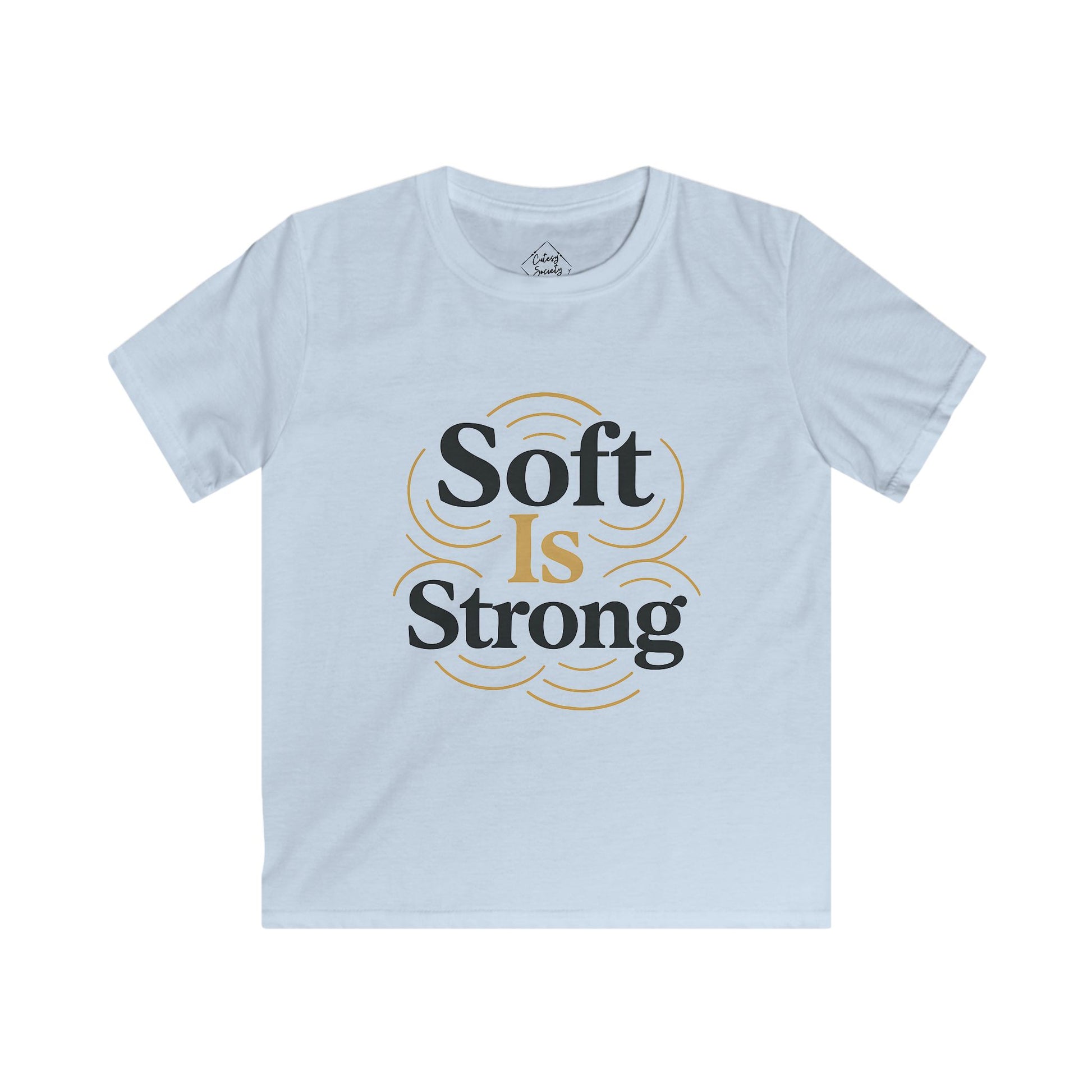 Confident and calm, this design centers "Soft Is Strong" in warm, playful lettering. This is a kids' soft cotton t-shirt designed for everyday wear. It reads like a gentle reminder about quiet strength.