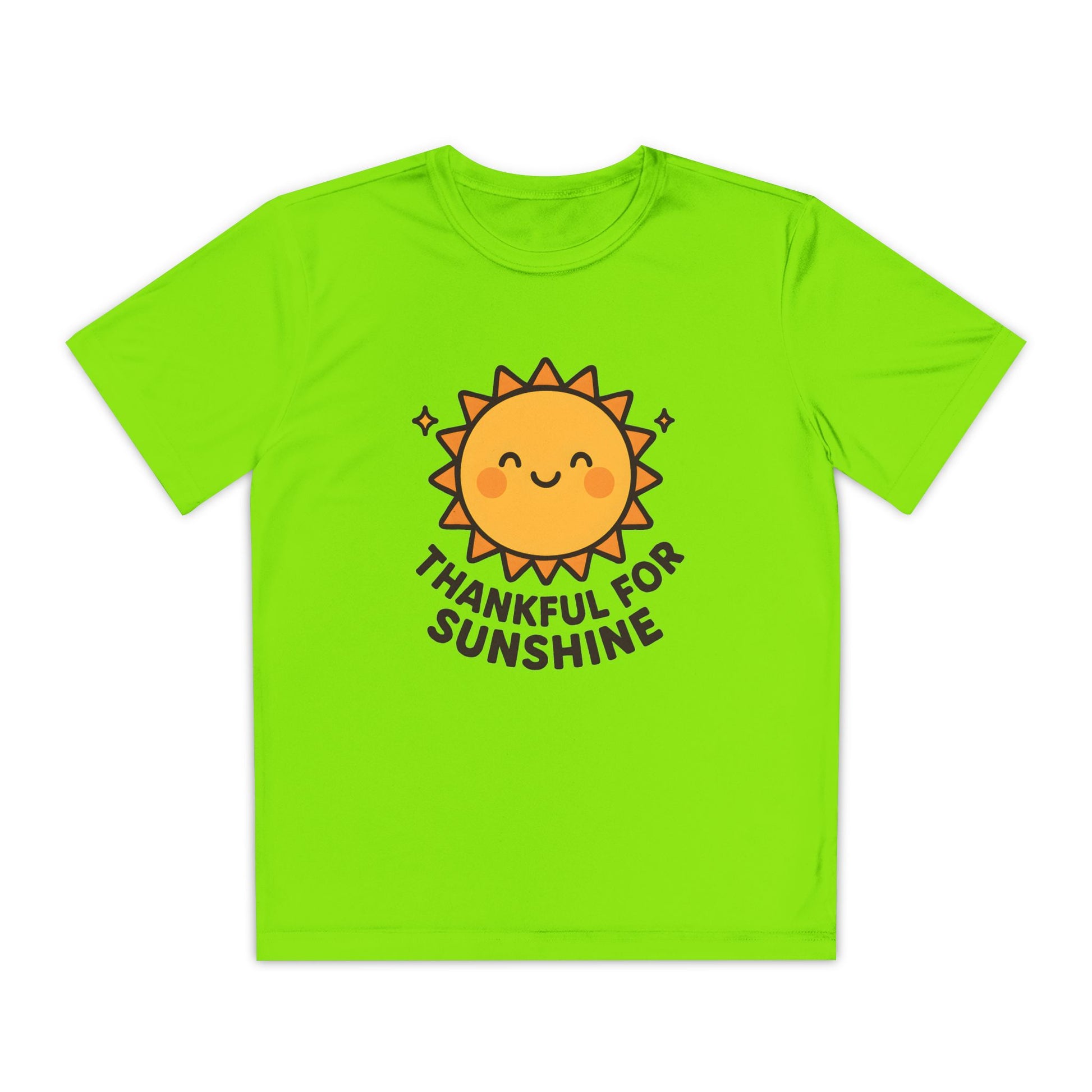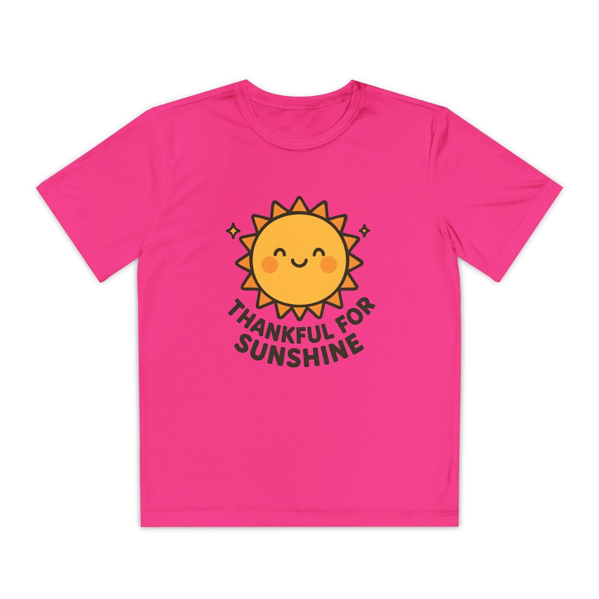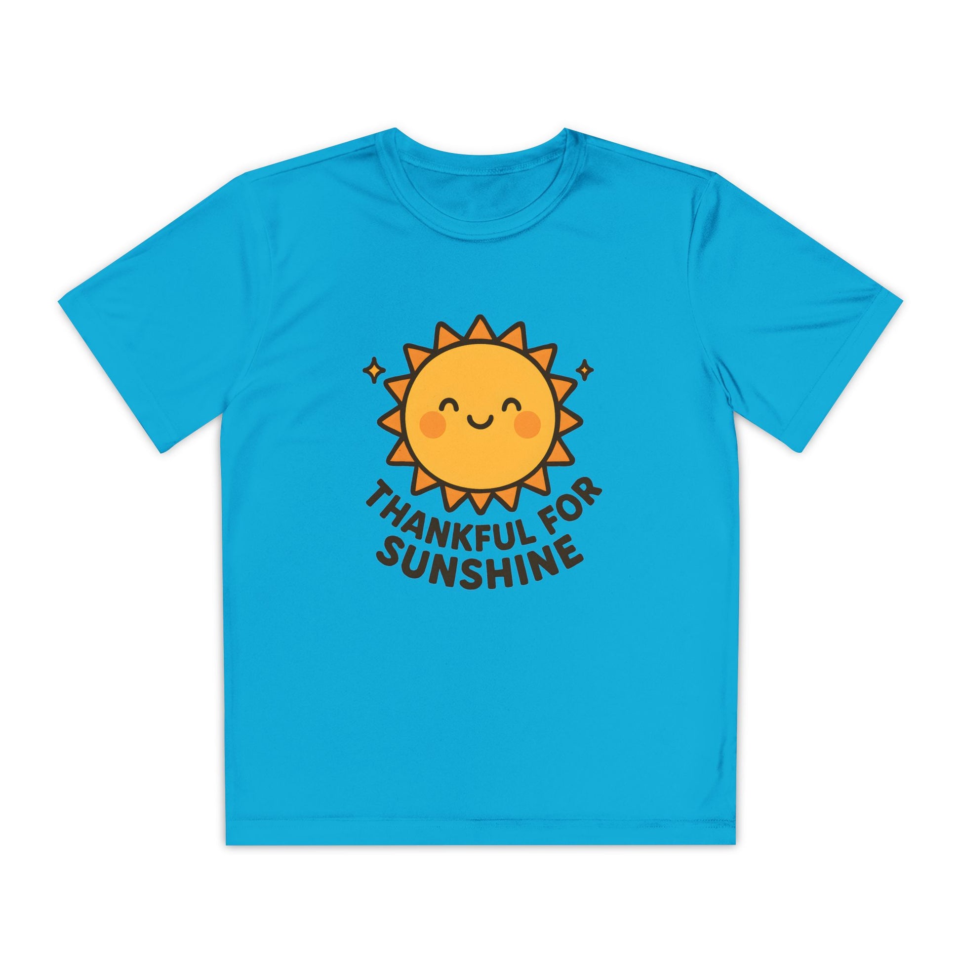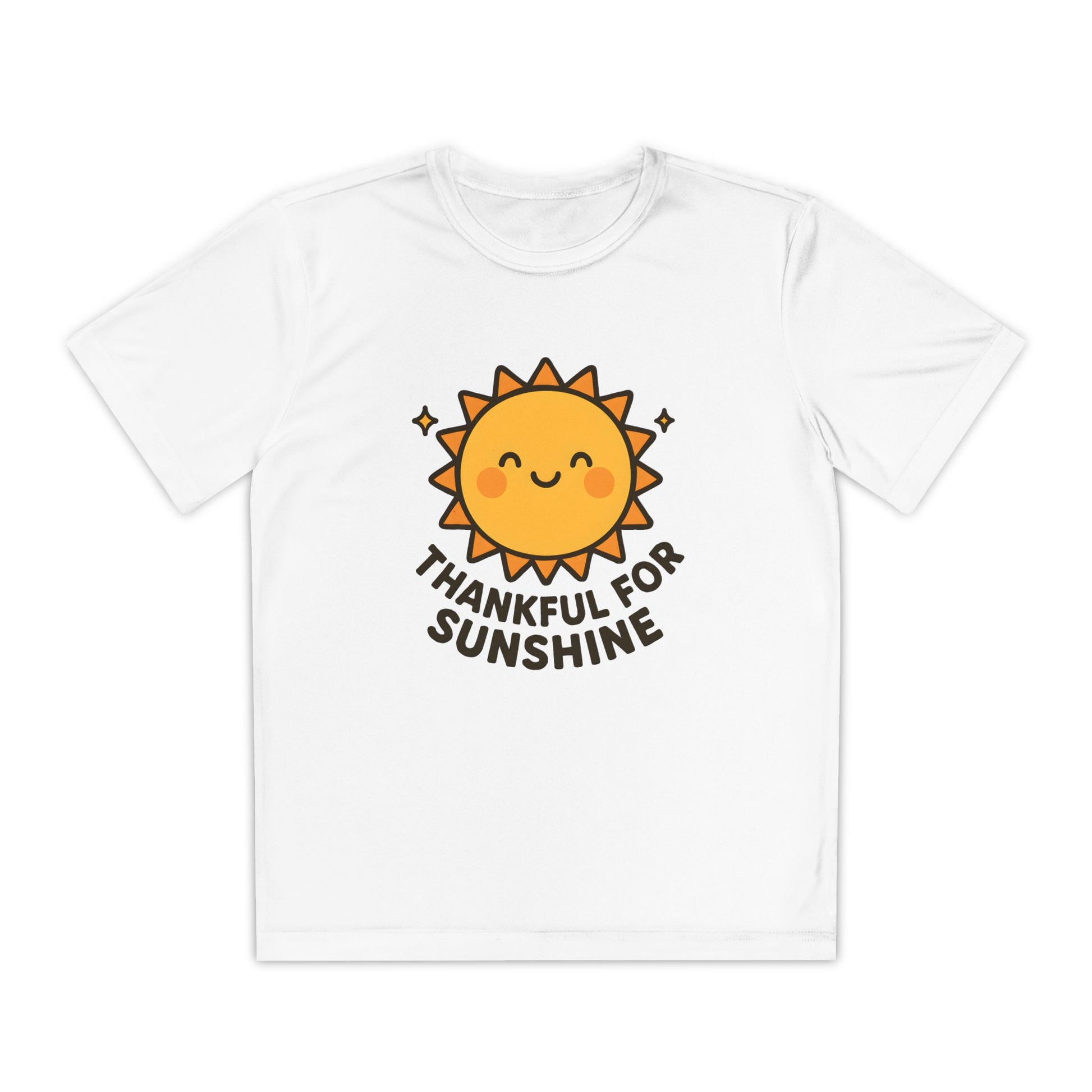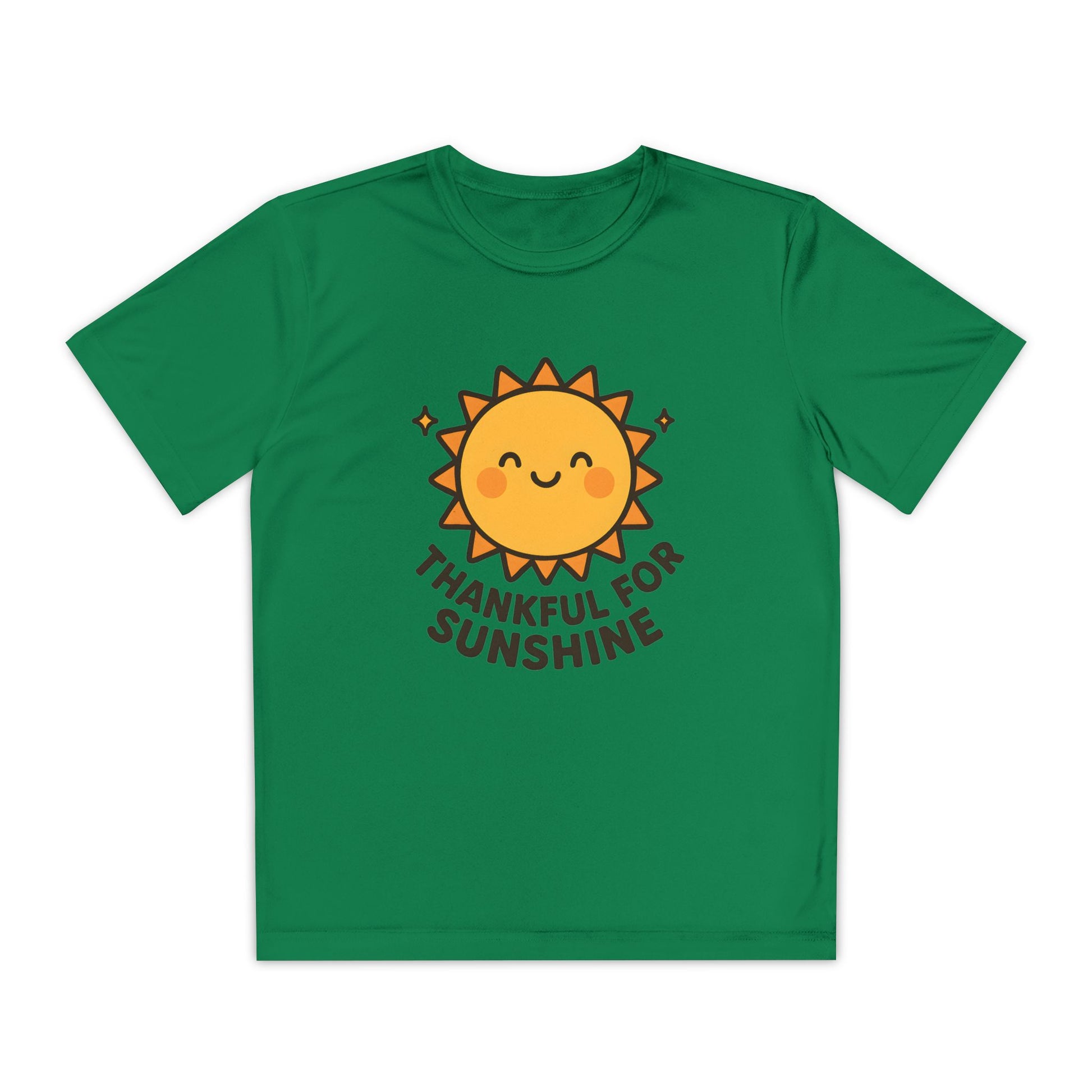 Light, cheerful, and built for movement — this youth athletic tee brings a sunny smile to active days. The soft, ultra-light polyester drapes like a second skin and breathes while young explorers run, play, and chase after whatever makes them grin. A bright, happy sun graphic sits front-and-center with the playful message below, adding a warm, optimistic touch to practices, park afternoons, or casual school days. The athletic cut keeps the silhouette streamlined without restricting motion. Quick-dry performance and a tear-away label mean fewer distractions and more time enjoying the moment.