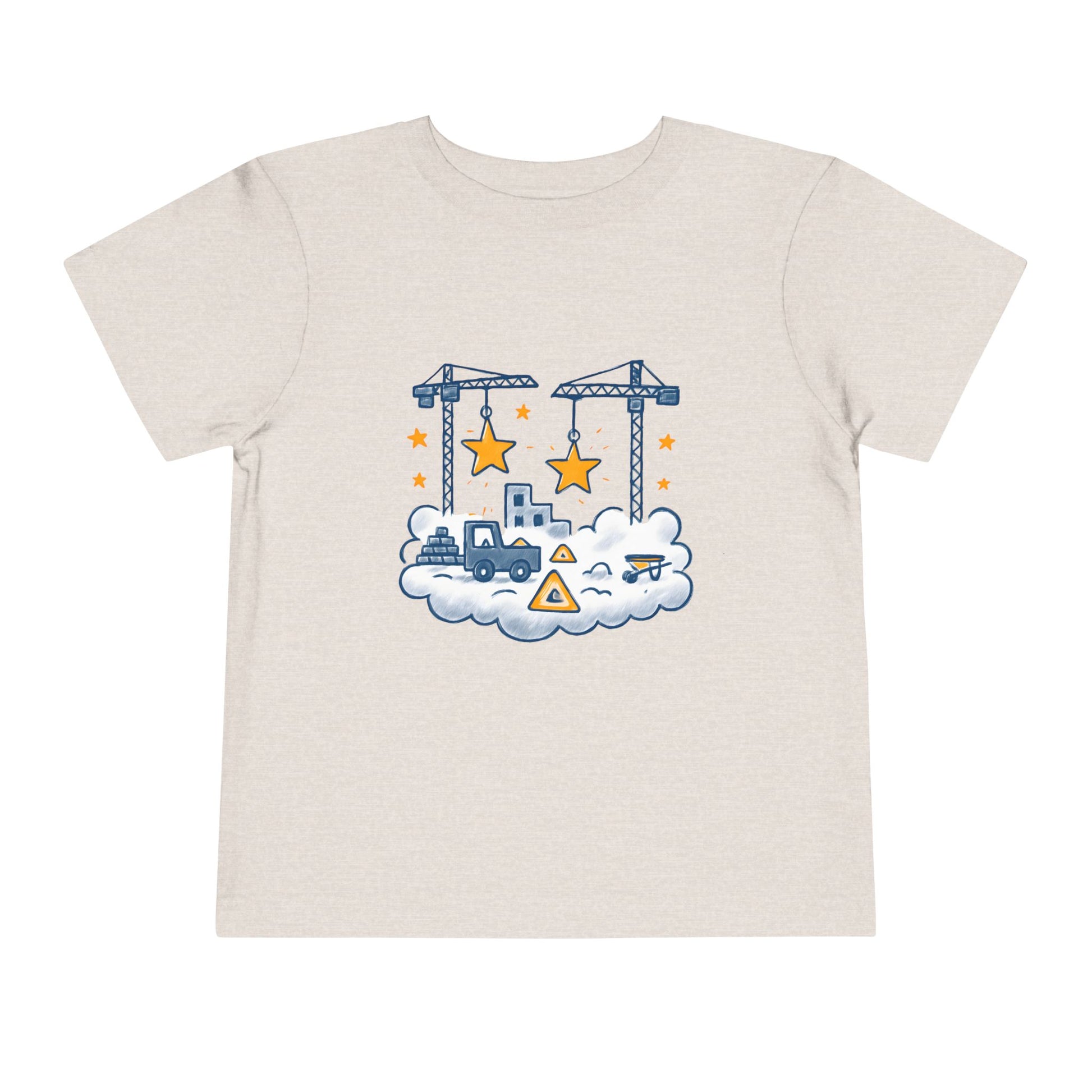 This is a lightweight toddler t-shirt designed for everyday wear, great for little builders and dreamers.